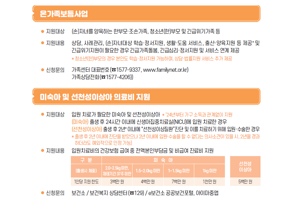 - 대상: 입원 치료 필요한 미숙아/선천성이상아 (24년부터 소득 무관)