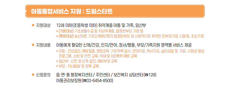 - 문의: 읍면동, 129, 아동권리보장원(02-6454-8500)